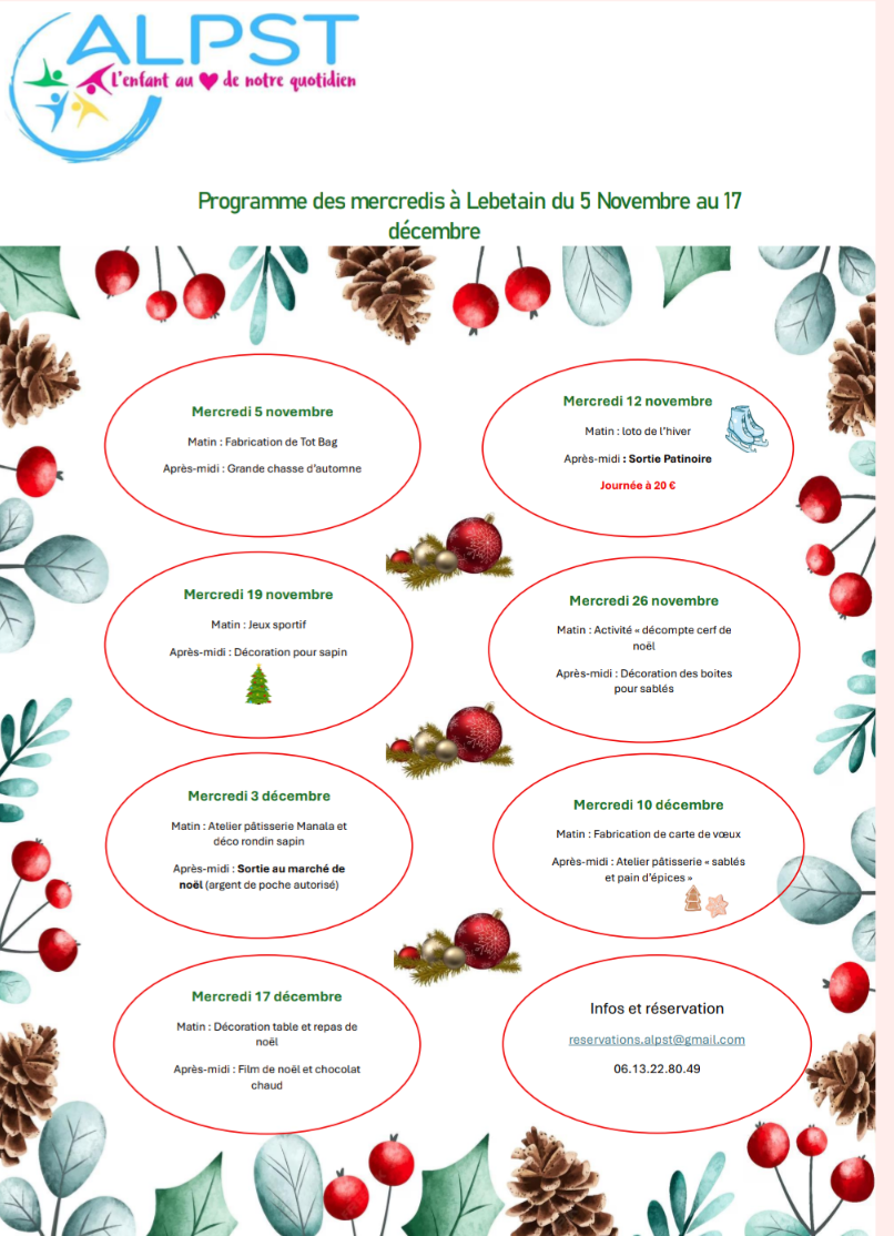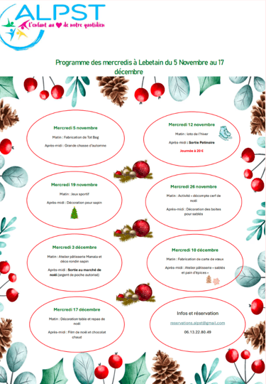 Programme des mercredis de novembre et décembre à Lebetain