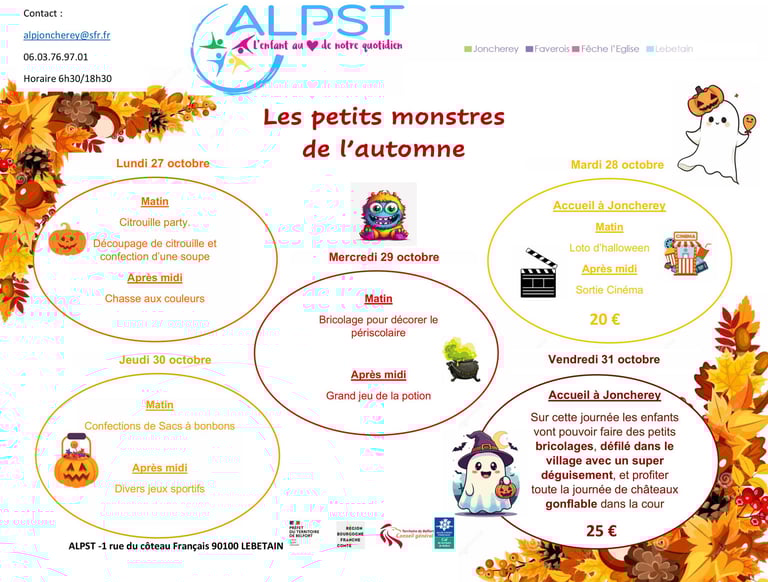 Programme des vacances d'octobre à Lebetain et Joncherey