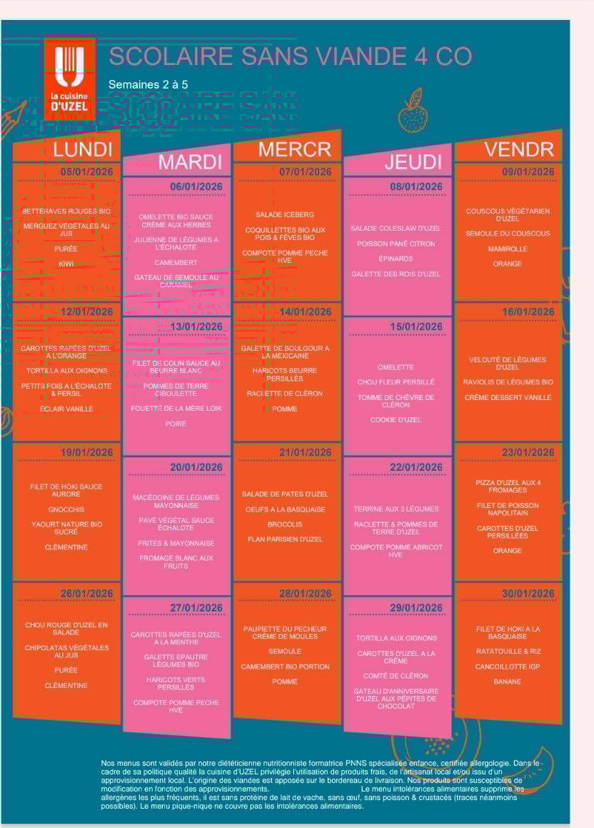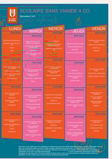 Menus de janvier